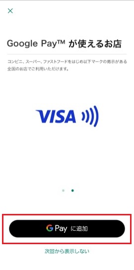 Google Wallet アプリが軌道するので [GPay に追加] をタップします。